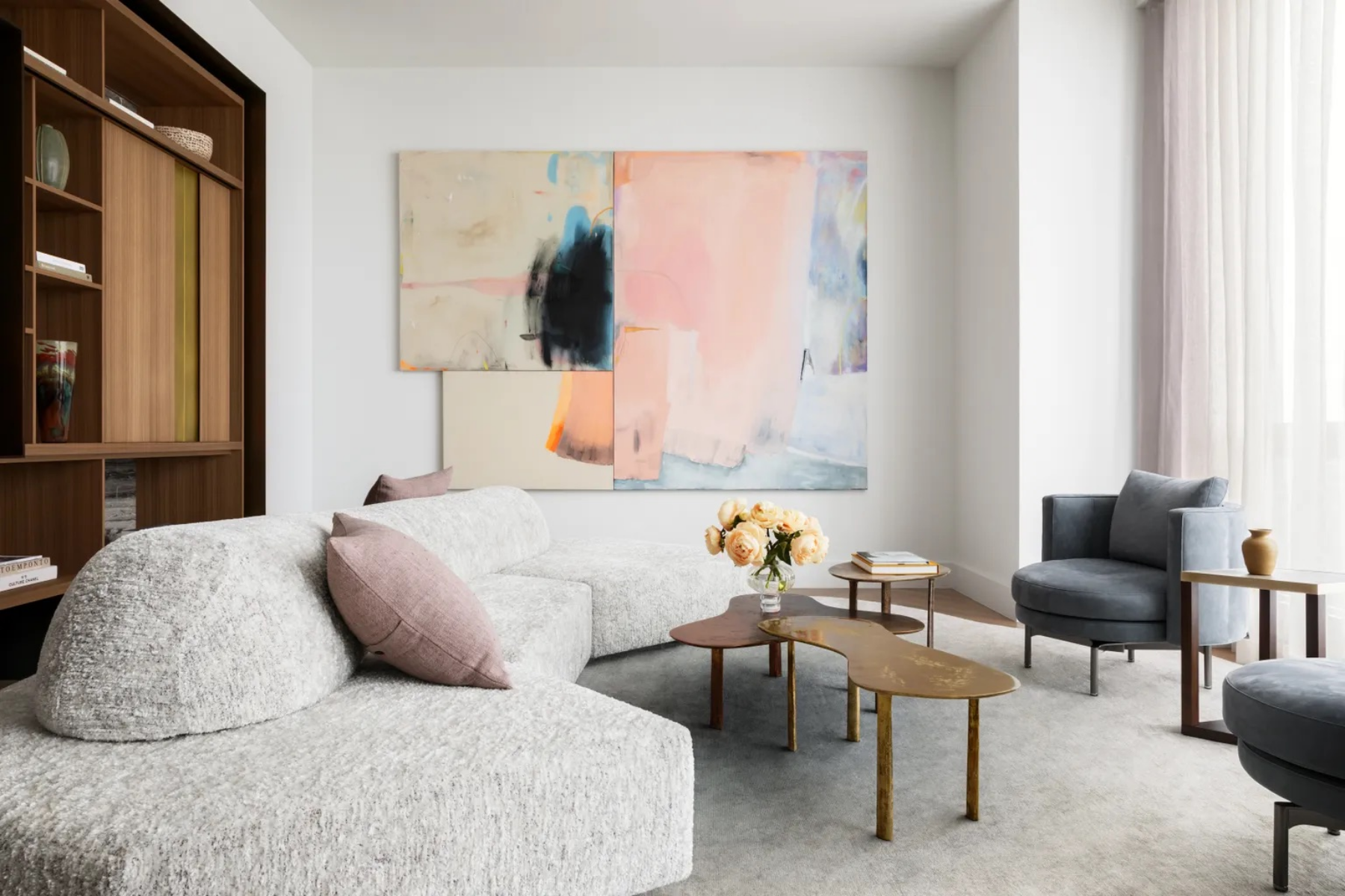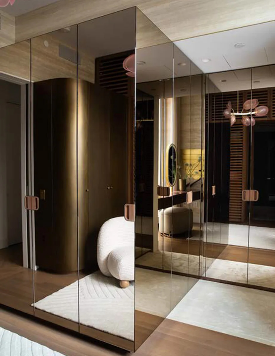 In this elevated luxury apartment, the breathtaking view of Central Park can feel overwhelming. DF&A’s challenge was to create a sense of human scale within the glass-and-steel space, balancing the grandeur of the views with homey intimacy.The design emphasises superior materials and rich textures, highlighted by a vertical bronze motif that unifies custom elements. For the marble-backed bar, we partnered with Focus Lighting to elegantly illuminate both the stone and the bottles, enhancing the sleek wooden cabinetry that defines the welcoming space.