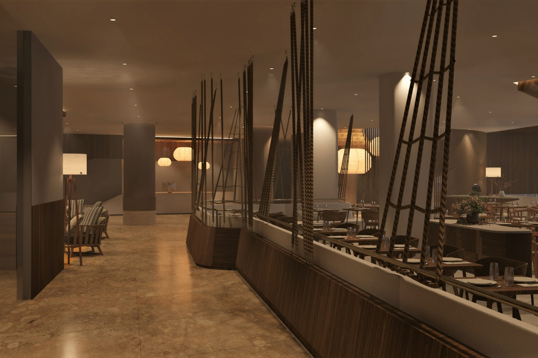 Harmonious Elegant Design of Ocean-Inspired Lobby and Dining Areas