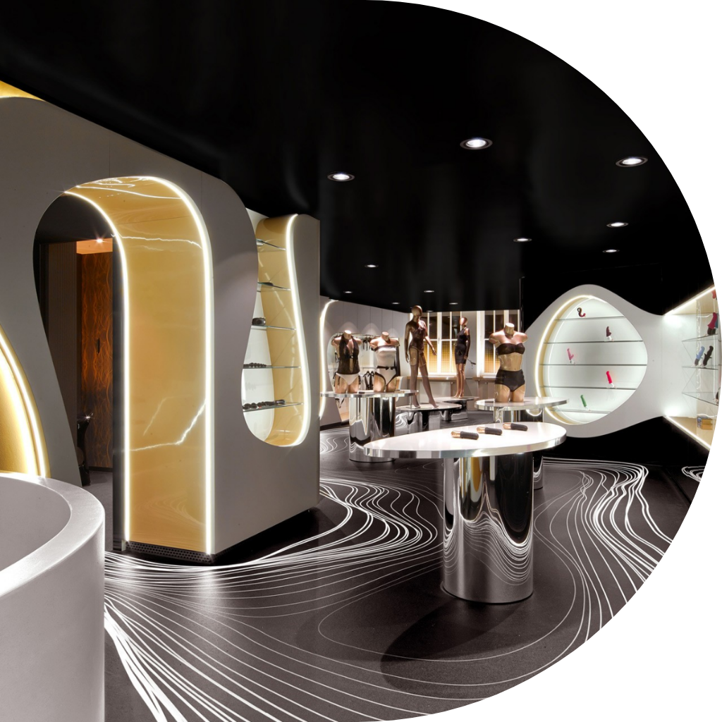 Exploring Sensual Curves and Futuristic Elegance in Retail Design