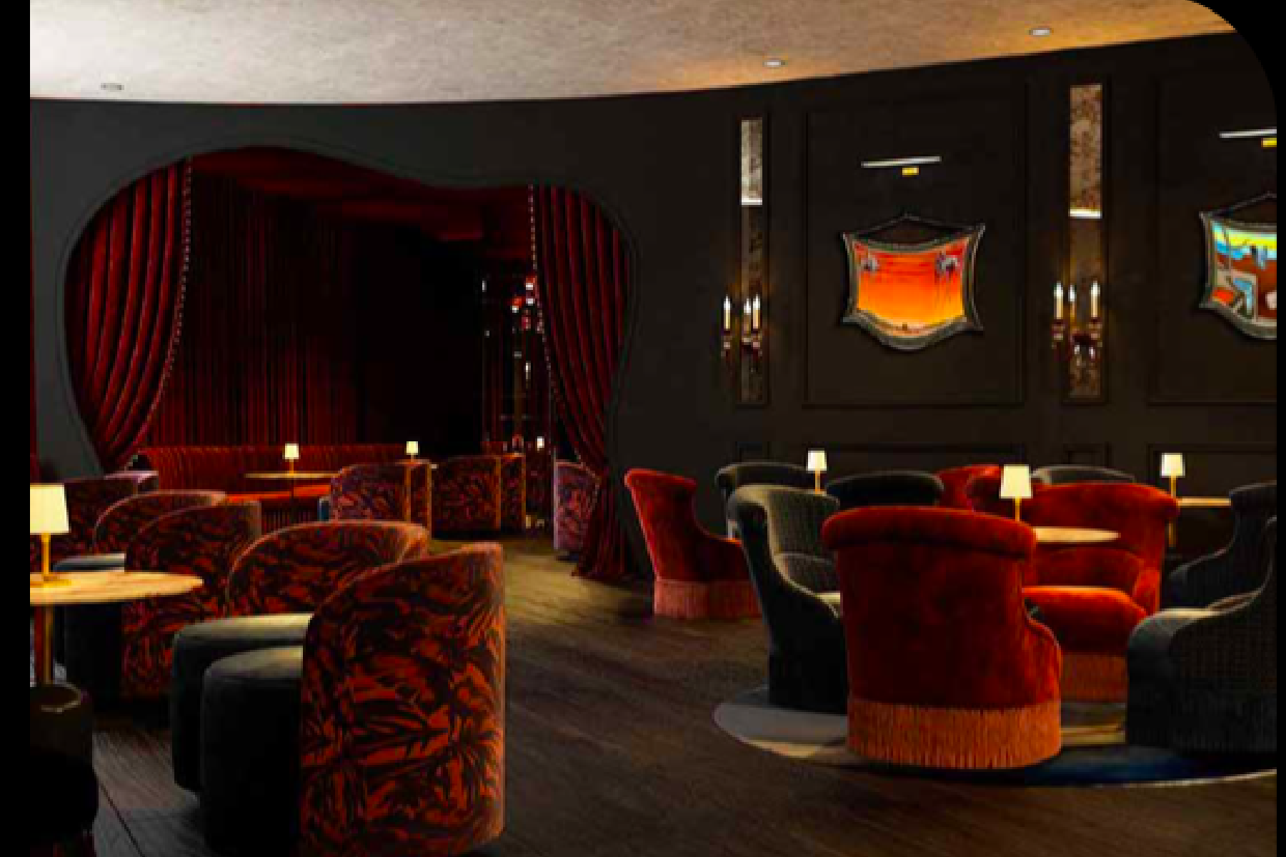Drawing its name from the renowned Spanish artist Salvador Dalí, the Maison Dali restaurant features a modern classical design, where striking red accents create a bold atmosphere. With red-hot walls, plush sofas, chairs, and carpets, the space is alive with color. Dali-inspired images adorn the walls, including whimsical depictions of people sporting his iconic mustache, further enhancing the creative vibe.