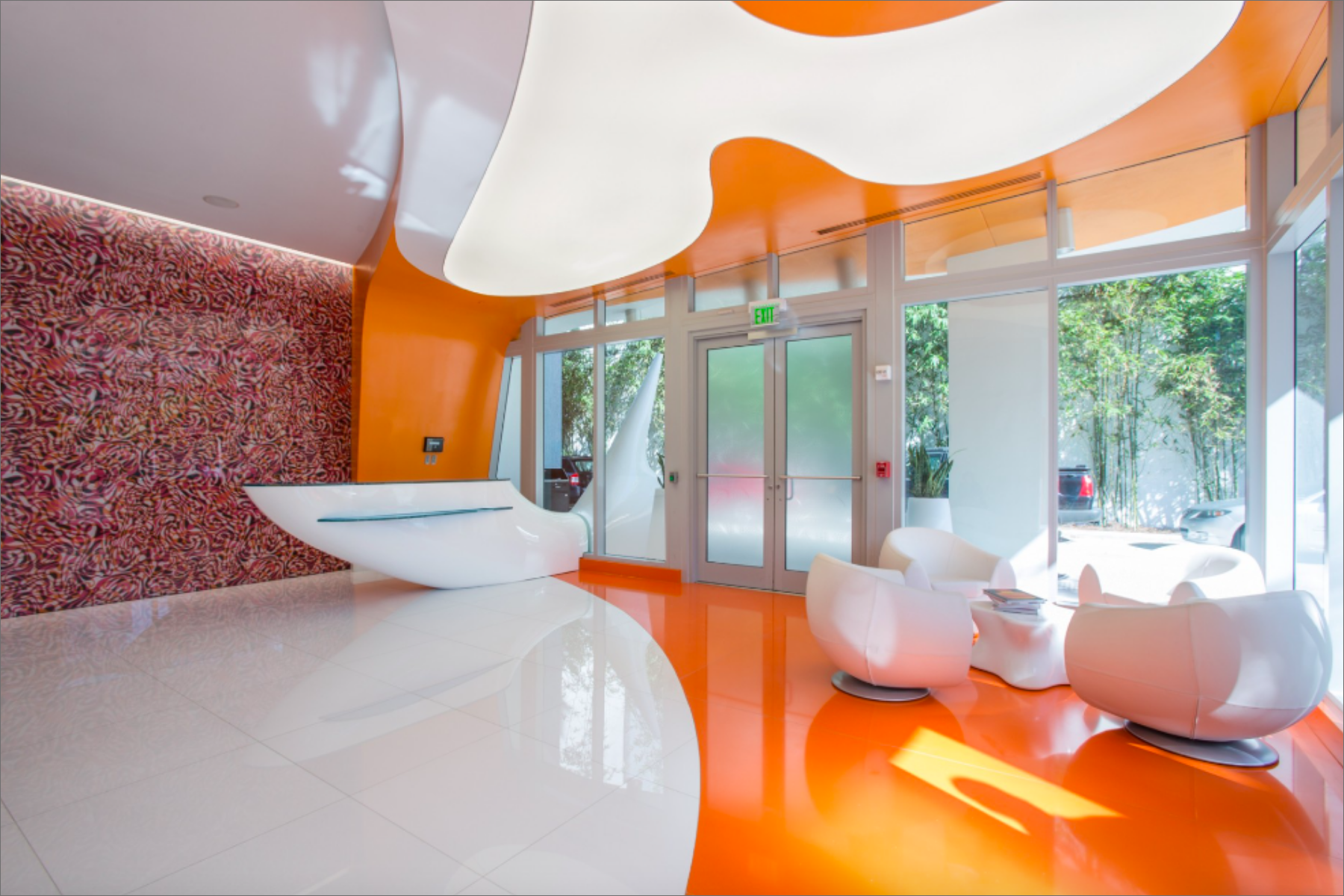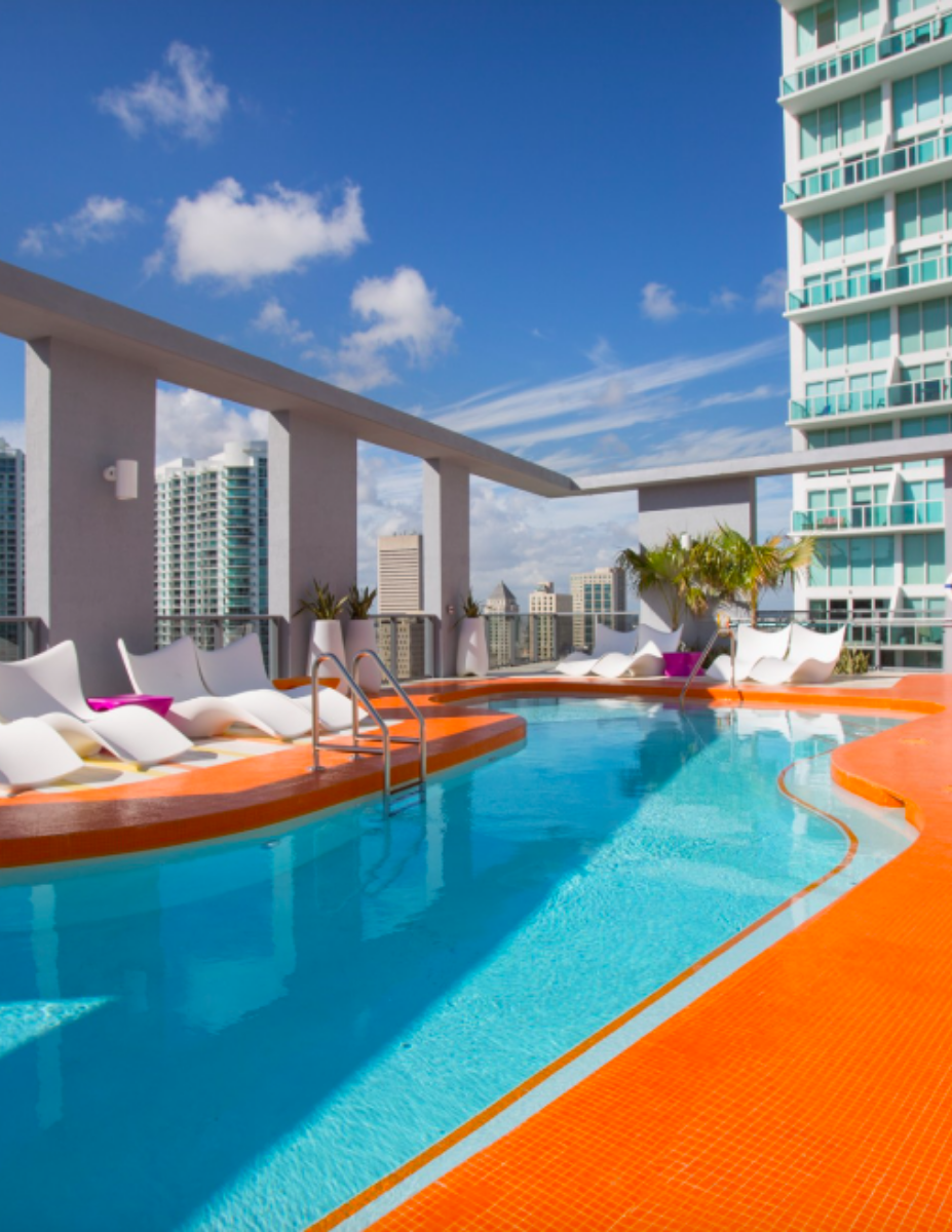 The mybrickell condominium embodies a commitment to democratic design, offering affordable yet stylish living spaces that reflect a true urban Miami lifestyle. Its contemporary spirit is marked by vibrant colours and playful elements.A striking first impression is made with a curvy canopy that connects the Architectonica-designed facade to the lobby, while the orange and white colour scheme enhances the sense of positivity. The cantilevered fiberglass reception desk seamlessly blends interior and exterior spaces. Upgraded apartments feature German laminate wood flooring, Italian Scavolini kitchens, custom bathroom tiles, premium Italian fixtures, and glass cabinets with quartz tops available in six colours.