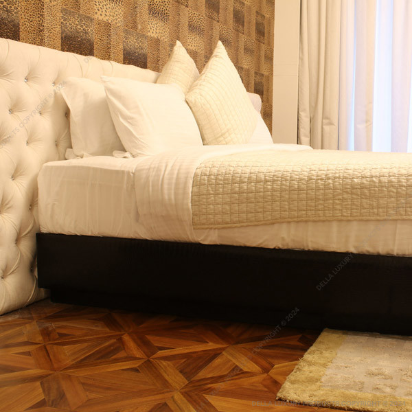 Our Bahman Bedroom Collection takes its inspiration from the Zoroastrian texts meaning ‘Good Purpose’ with tastefully designed luxury furniture. This eclectic collection is made in Teakwood, Marine Plywood, Multi-Density Foam, Leatherite, Veneer and Silver Portoro Marble with a classic Gloss finish.