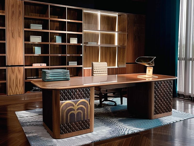 SHOP THE ENTIRE COLLECTIONThe Cranaus Collection features a sophisticated Senior Management Desk crafted from High Gloss Veneer. Complemented by a sleek Side Runner and a functional Back Credenza, this collection also includes Conference and Meeting Tables, a versatile Library and Storage unit, a Coat Hanger, a T.V. Panel with luxury Marble Detailing, and a beautiful Planter to enhance the overall cabin ambiance.